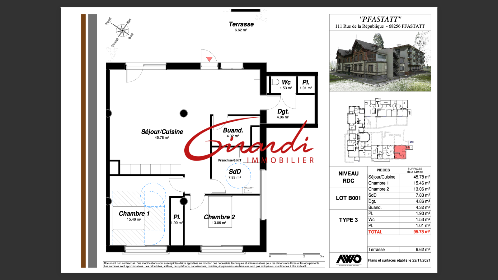 SITUATION : Arrêt de bus devant la résidence, Proche du Centre de Pfastatt et des commerces, à 10 mn de Mulhouse LOT B001 LIVRÉ EN PLATEAU