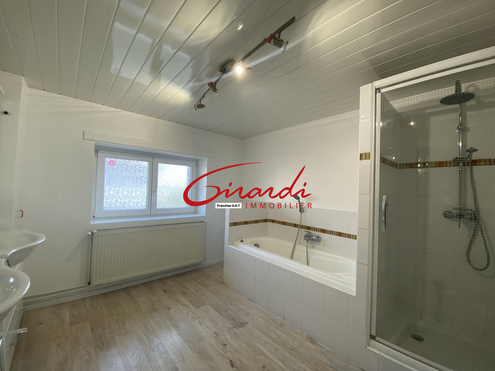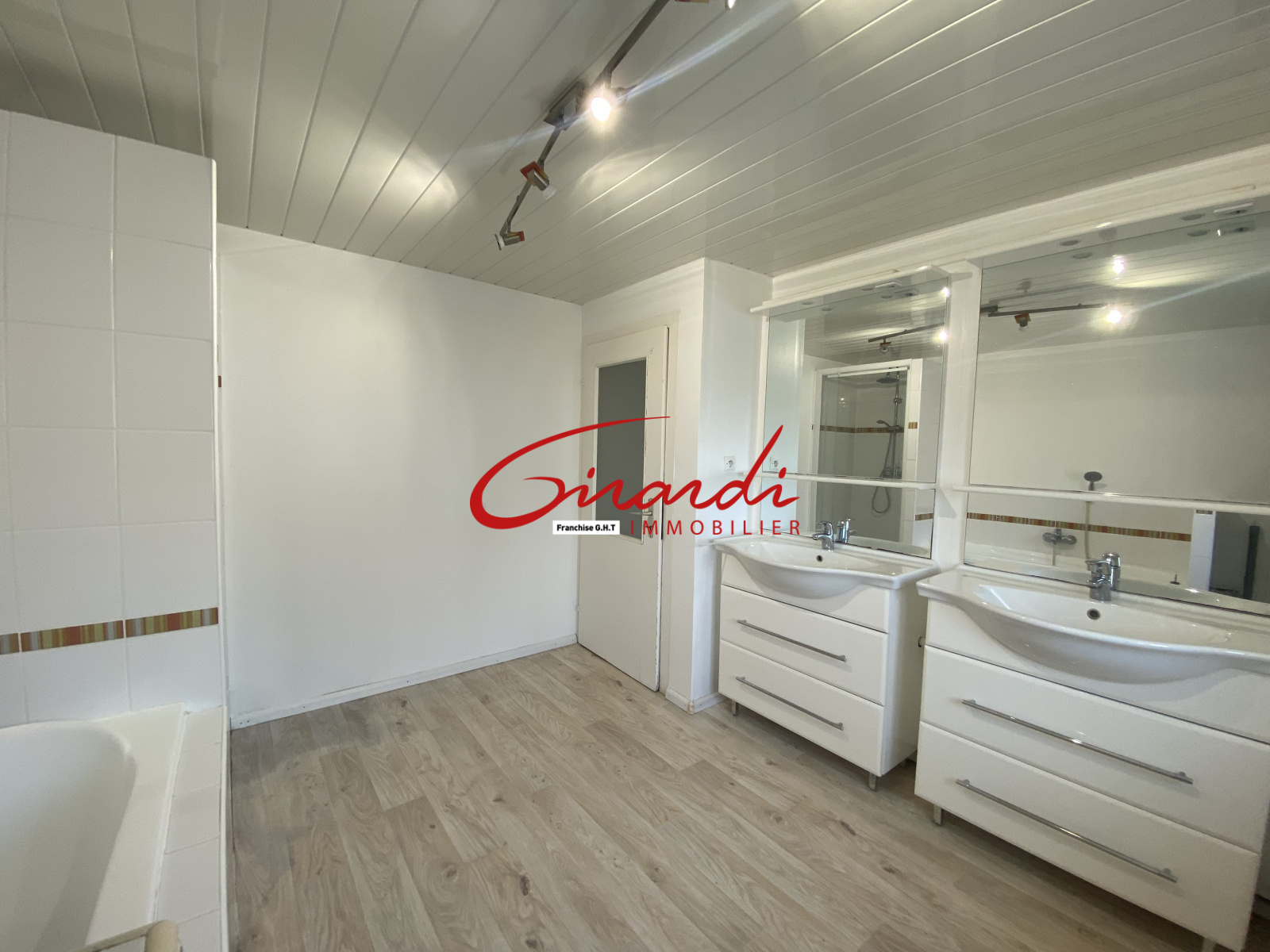 Au rez-de-chaussée : d'un grand salon séjour attenant à une cuisine équipée, une salle de bains avec douche et baignoire, un wc indépendant, un garage avec la possibilité d'être transformée en chambre de plein pied.