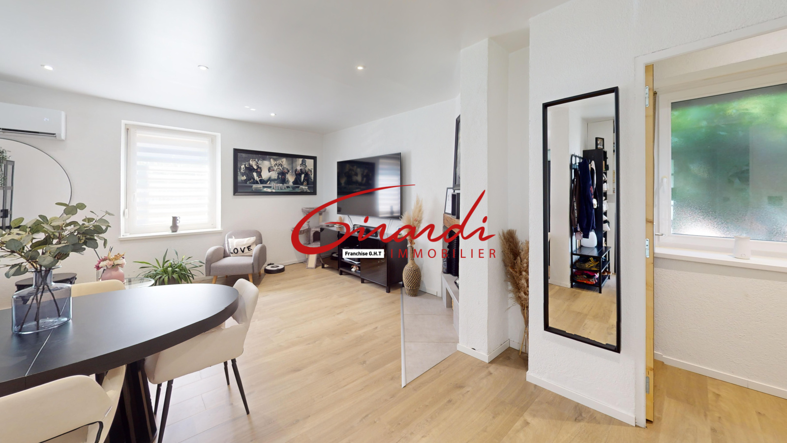 À RIXHEIM, dans un environnement calme en impasse et à proximité de Riedisheim, des frontières, des gares et de toutes les commodités, découvrez cette maison individuelle de 100 m² entièrement rénovée, vendue avec une vaste dépendance de 200 m² à rénover.