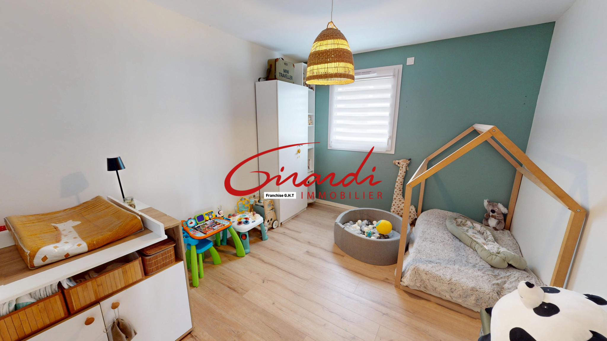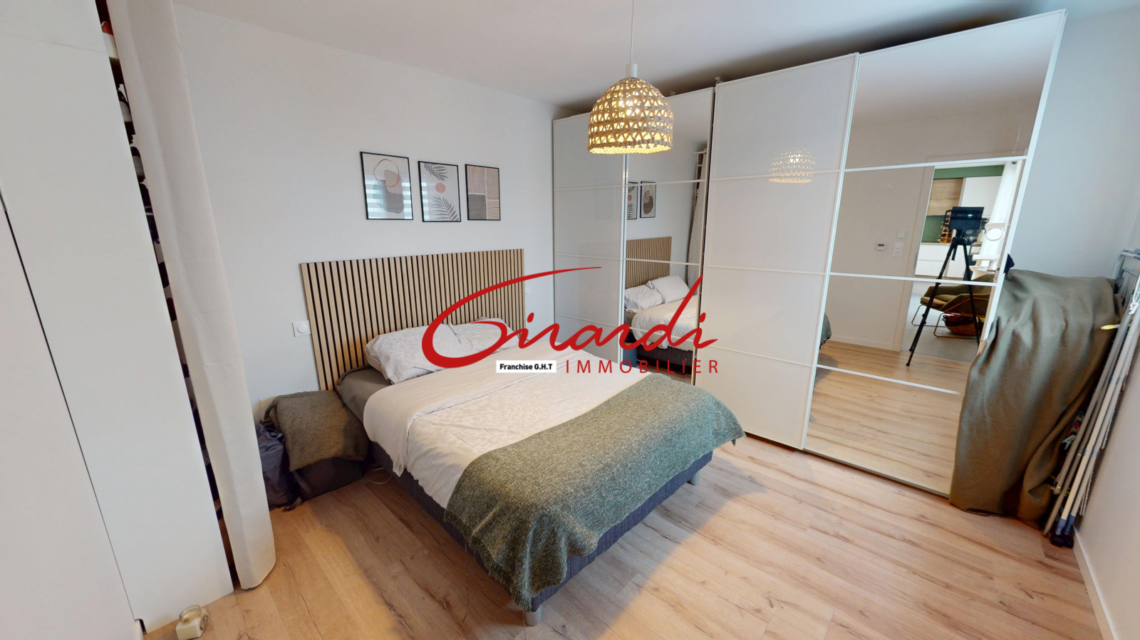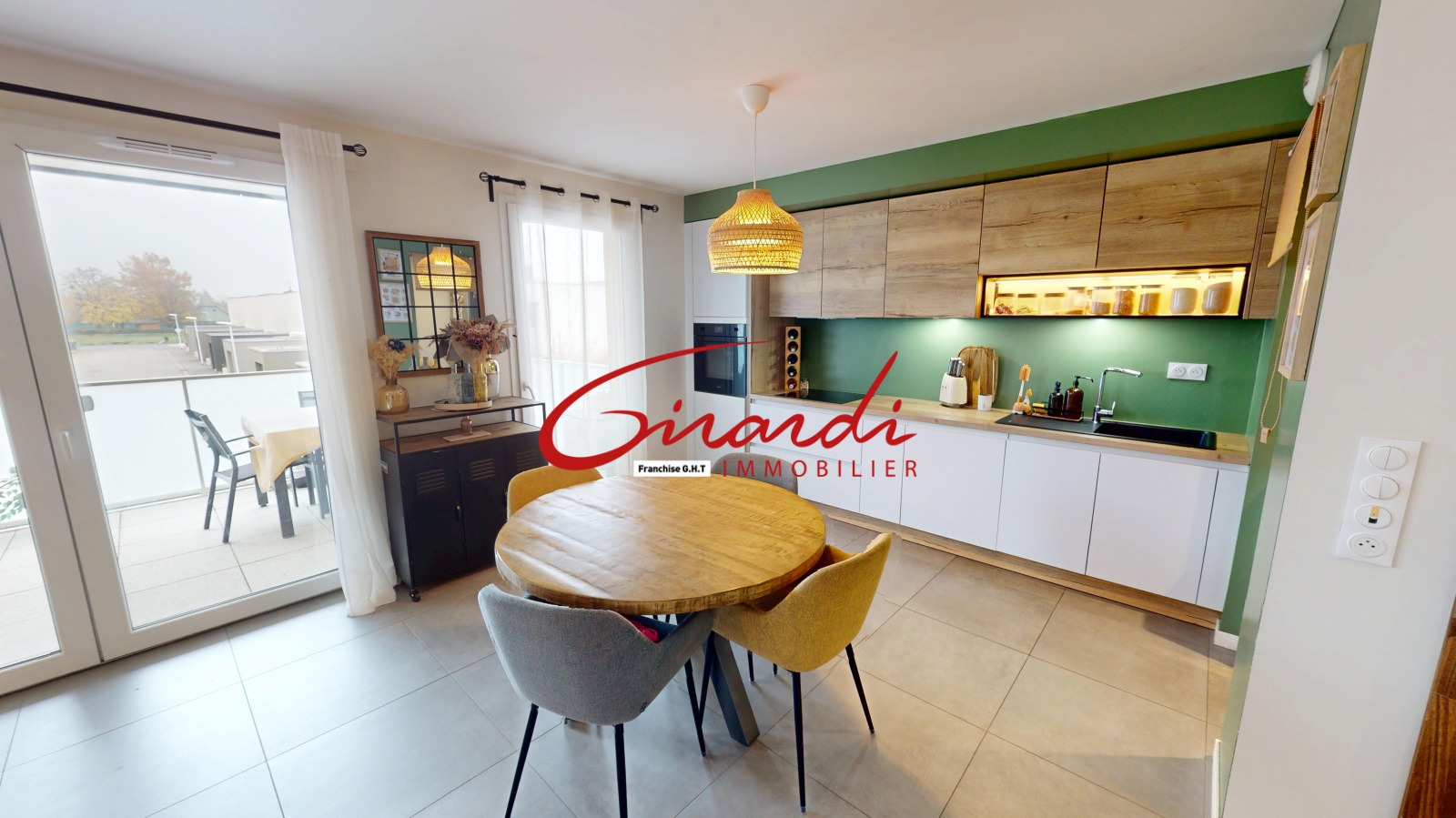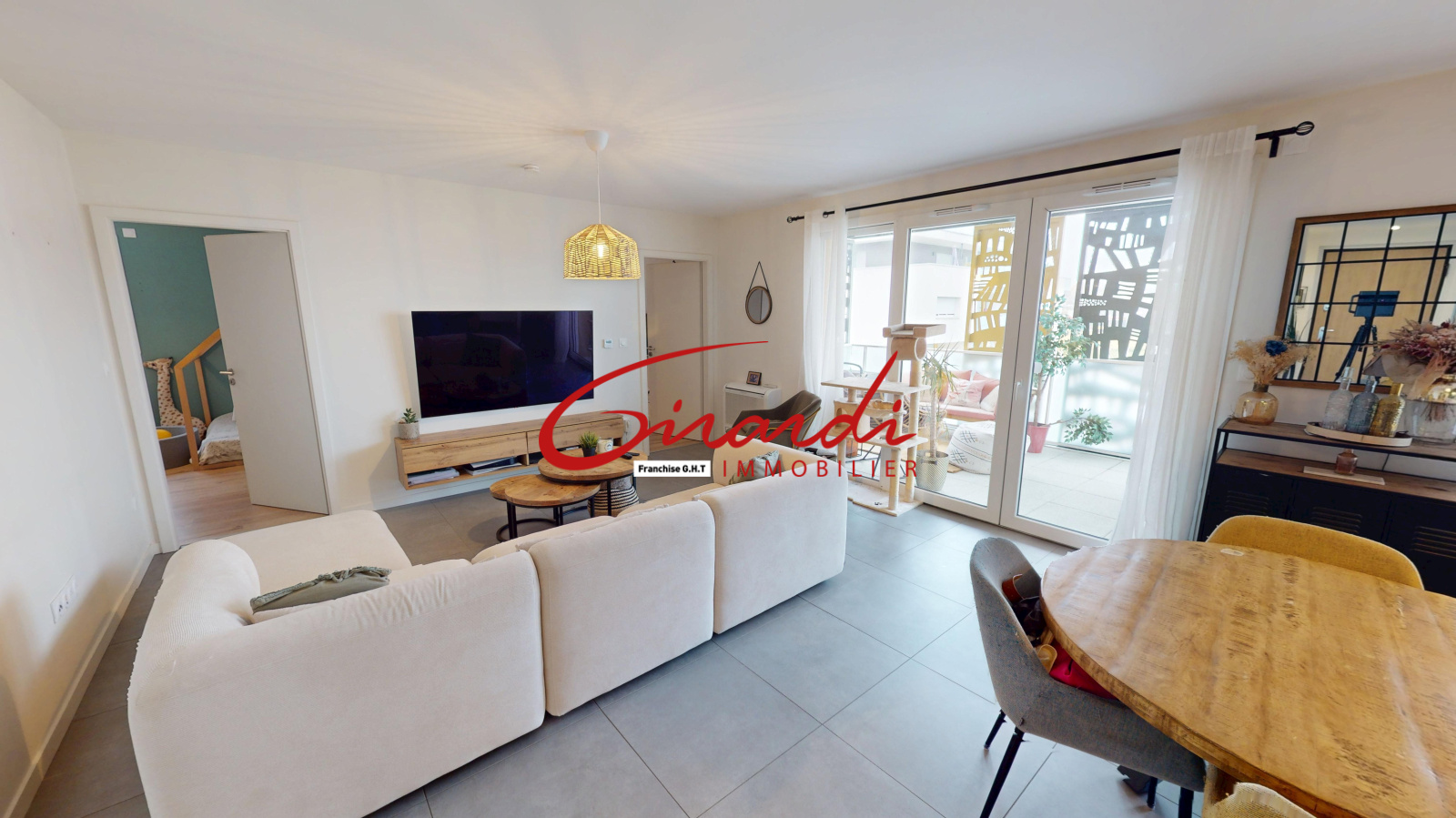 Dès l’entrée, un grand placard de rangement mène à une belle pièce de vie de 31 m², lumineuse et conviviale, avec une cuisine entièrement équipée ouverte sur le salon-séjour et un accès direct à une terrasse exposée plein sud.