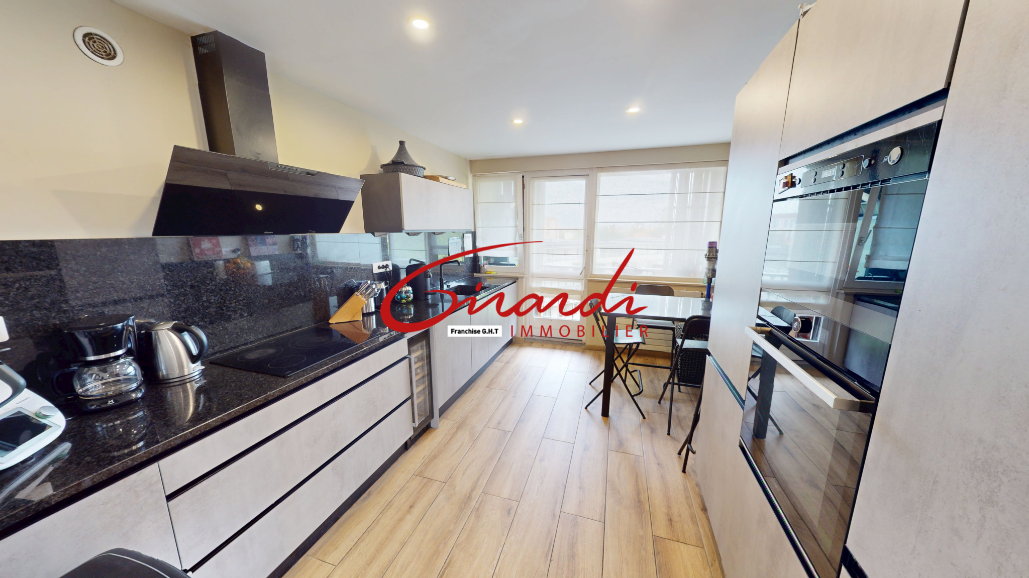 • Cuisine : Cuisine moderne entièrement équipée avec accès direct à un second balcon.