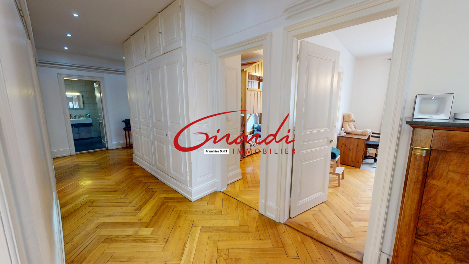 - Beaux volumes, charme de l'ancien : Parquets massifs, hauteurs sous plafond, cimaises et bow-window..., possibilité d'agrandir le salon séjour en supprimant une chambre attenante, il ferait ainsi 55,35 m2