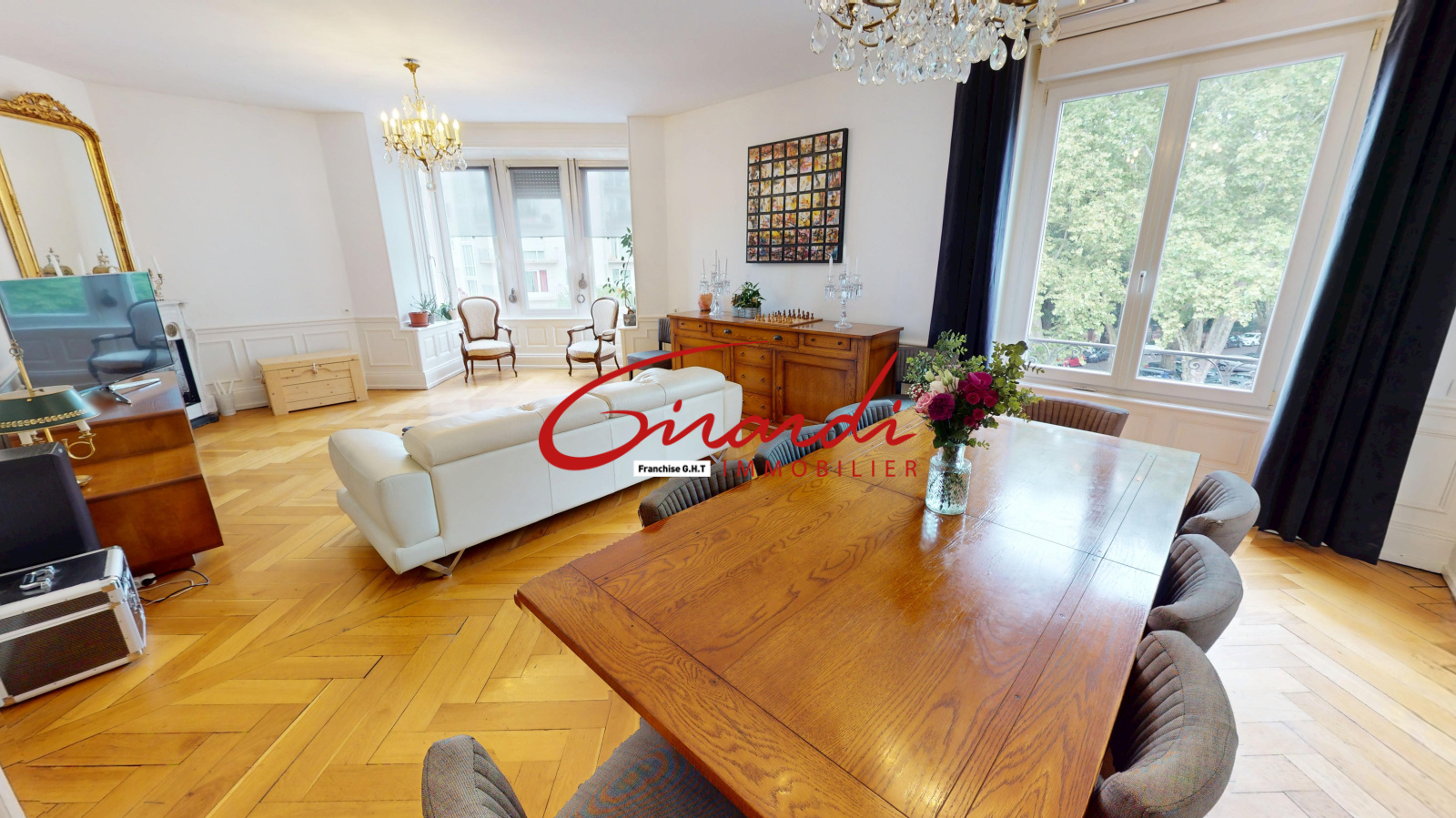 Situé au 2ᵉ étage sans ascenseur d’un immeuble de caractère, cet appartement de 148.36m² se compose d’une entrée desservant un vaste salon-séjour double de 36,51 m2 , baigné de lumière, une cuisine séparée, entièrement équipée.
