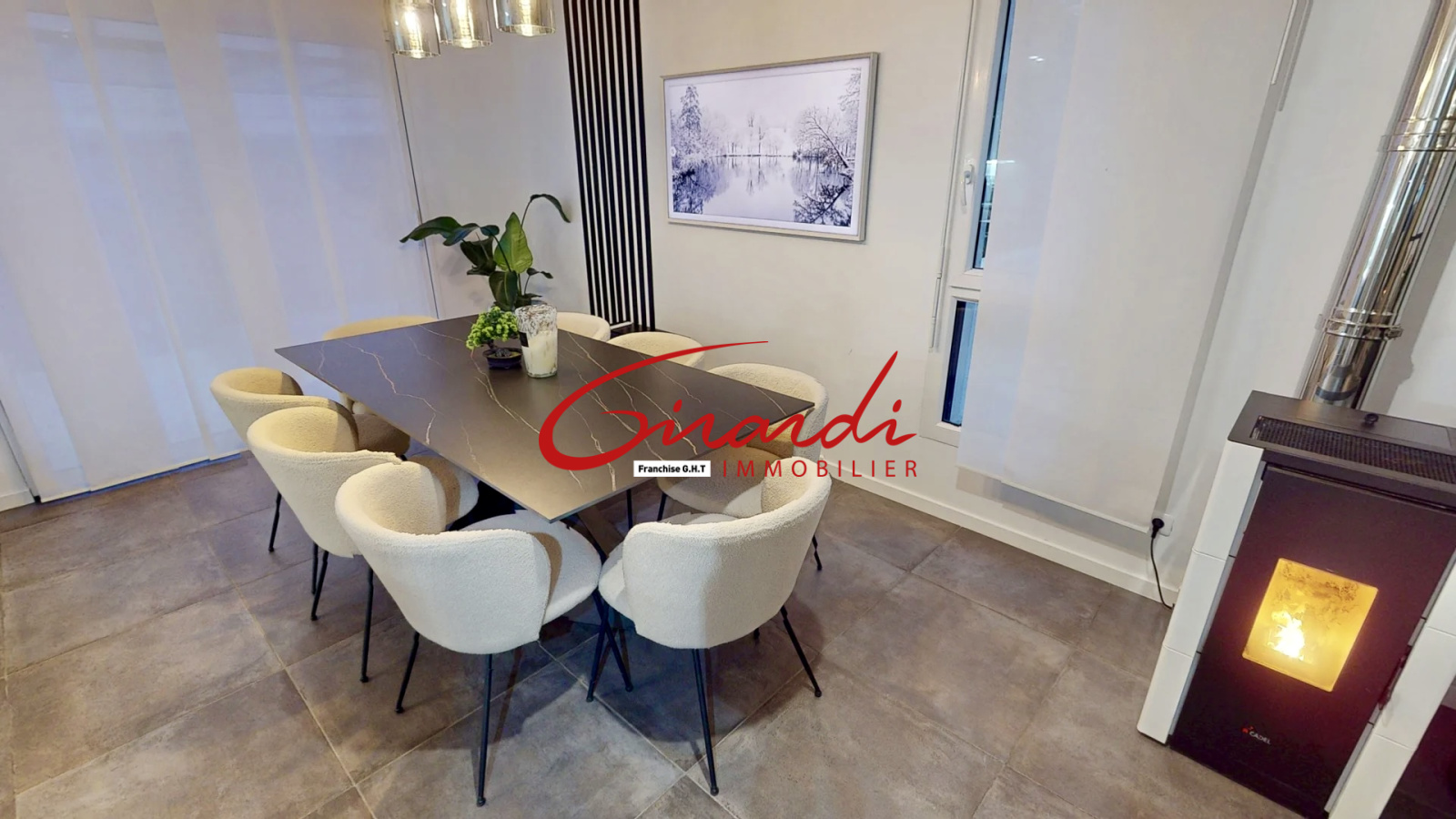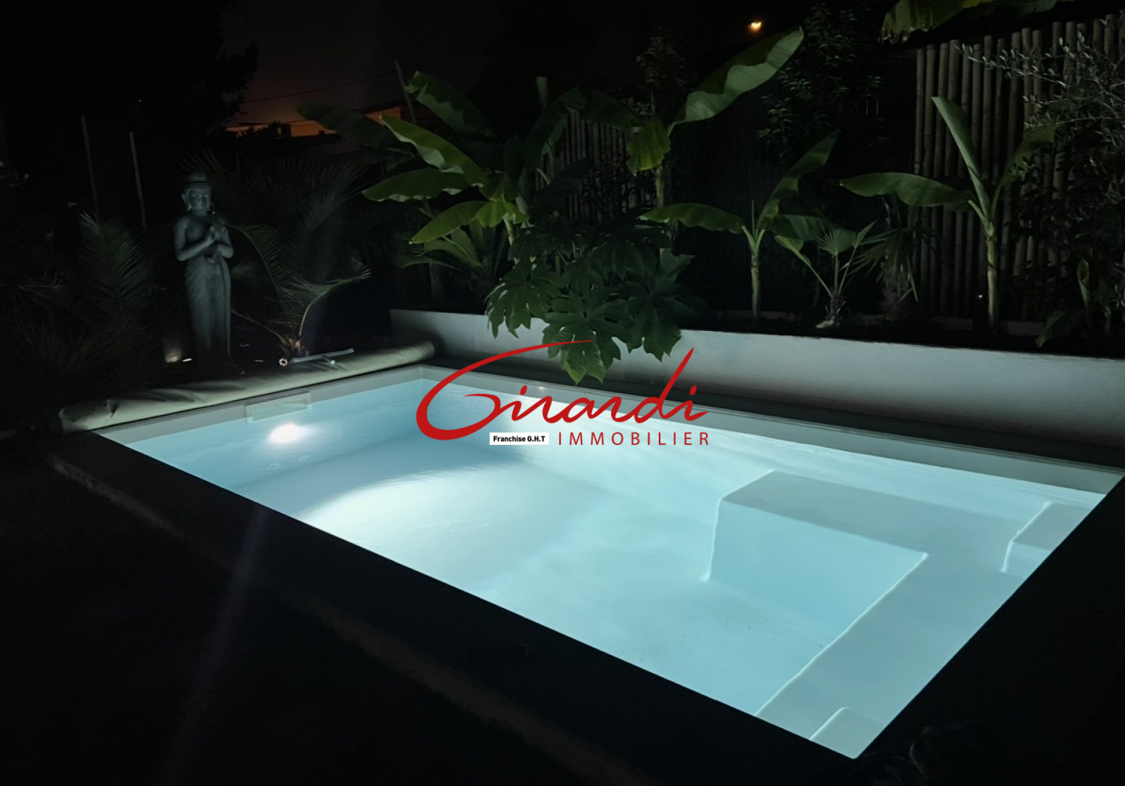 À l’extérieur, un espace clos et arboré accueille une piscine coque enterrée chauffée ainsi qu’une belle terrasse avec accès direct depuis le séjour.