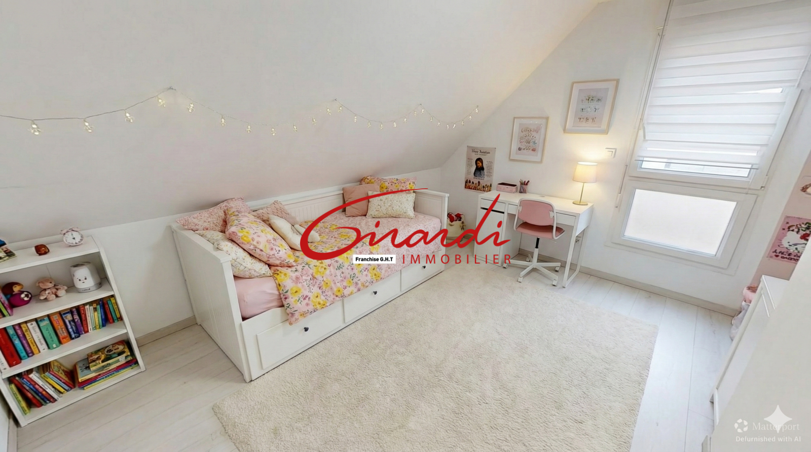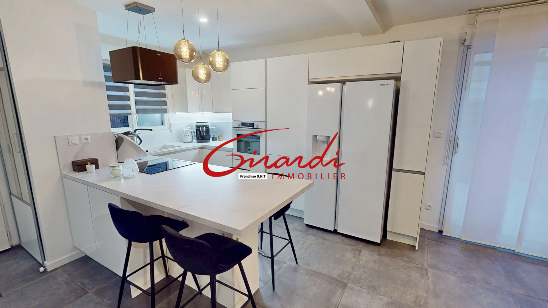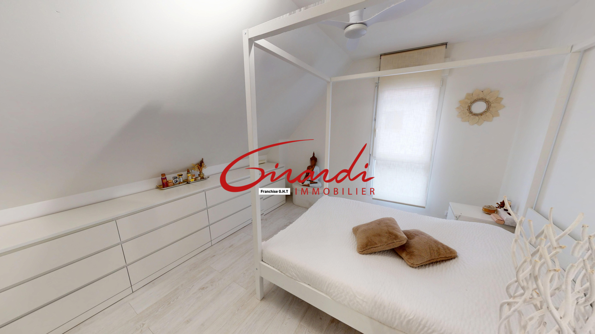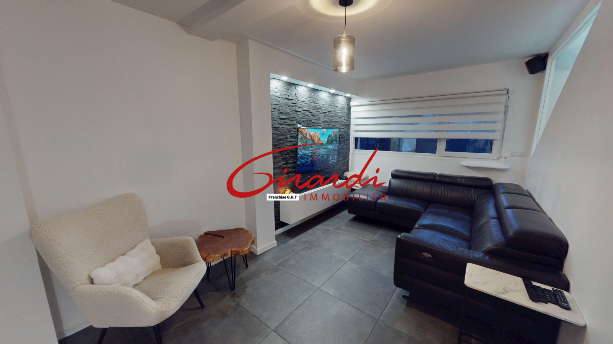 Un garage attenant à la maison, équipé d’une porte motorisée, vient compléter le bien.