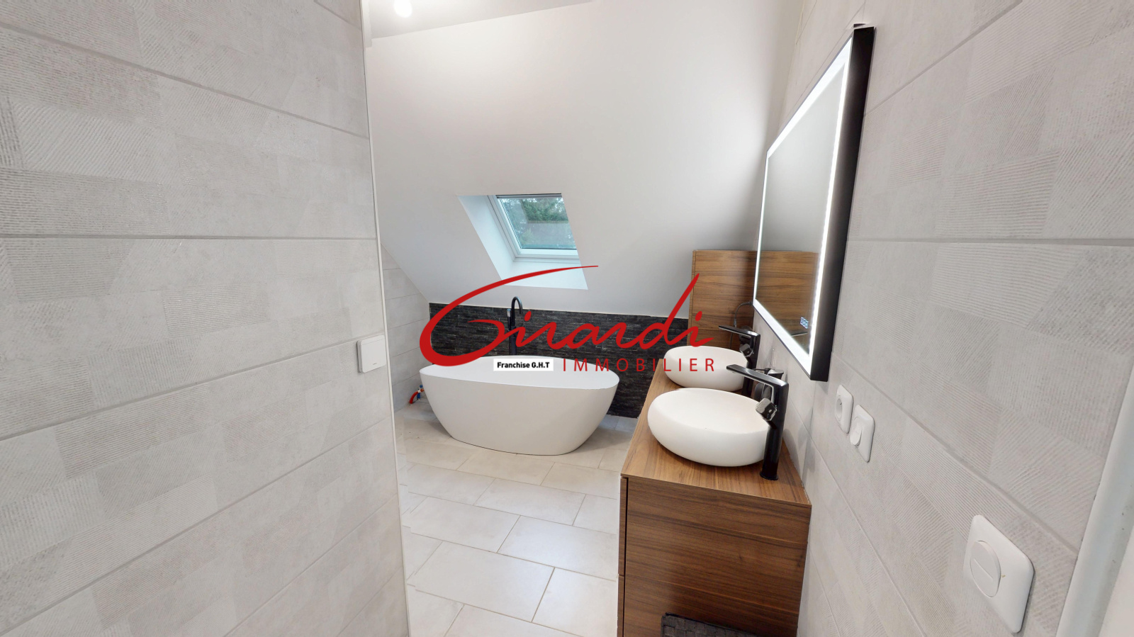 À l’étage, vous trouverez trois chambres de 14 m², 13 m² et 12 m², ainsi qu’une salle de bains comprenant une douche à l’italienne, une baignoire ilot et un meuble double vasque.