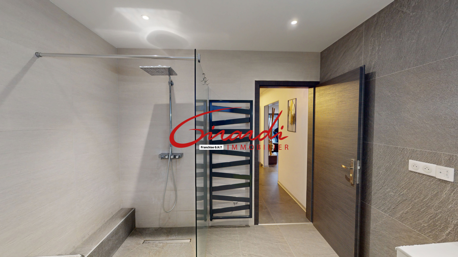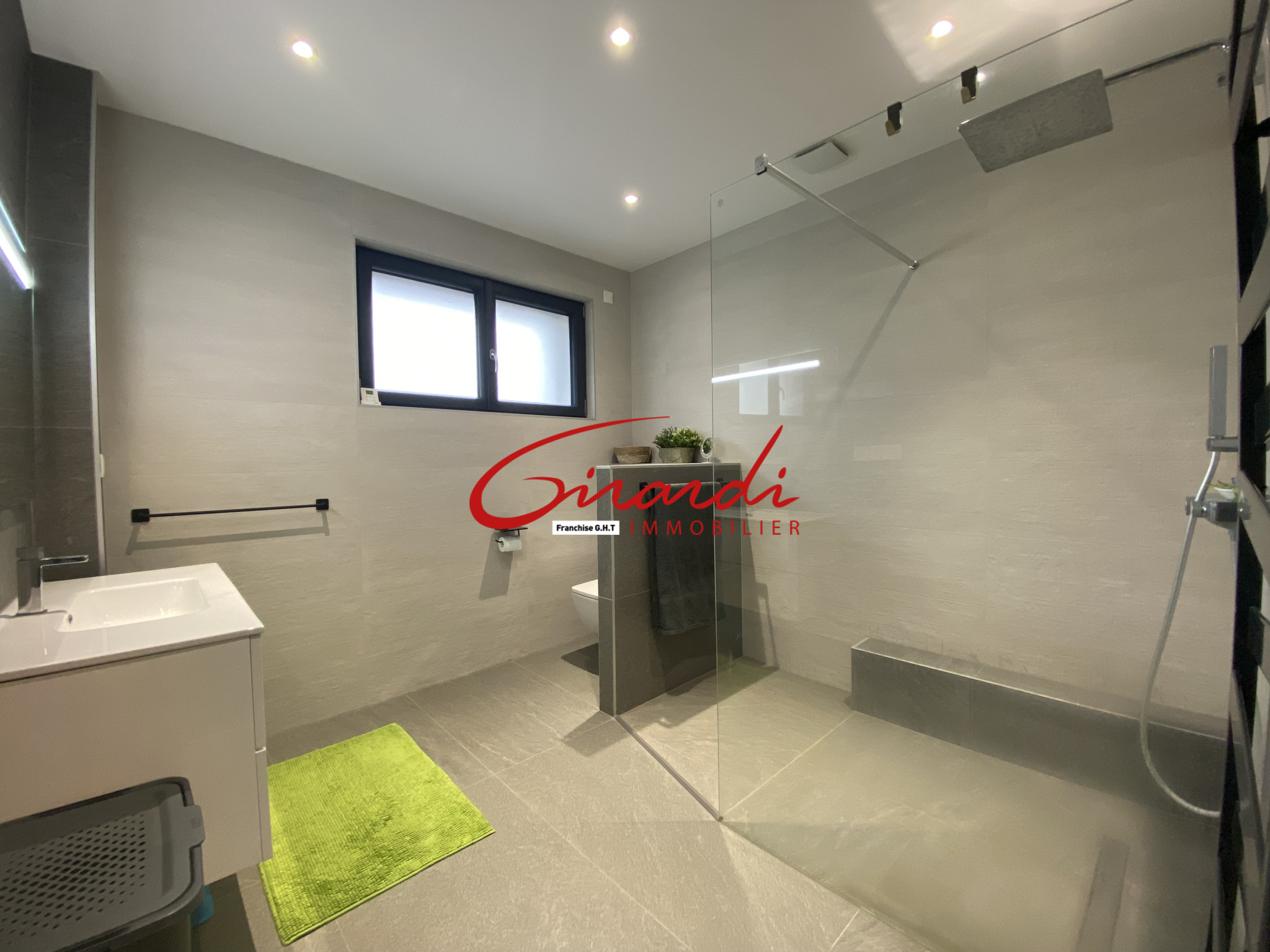 Au réa de chaussée : elle se compose beau hall d'entrée, de trois grandes chambres, une salle d'eau avec douche italienne et Wc suspendu et enfin d'une lumineuse pièce à vivre salon-séjour avec cuisine américaine entièrement équipée et son accès direct au jardin par le biais d'une petite terrasse.