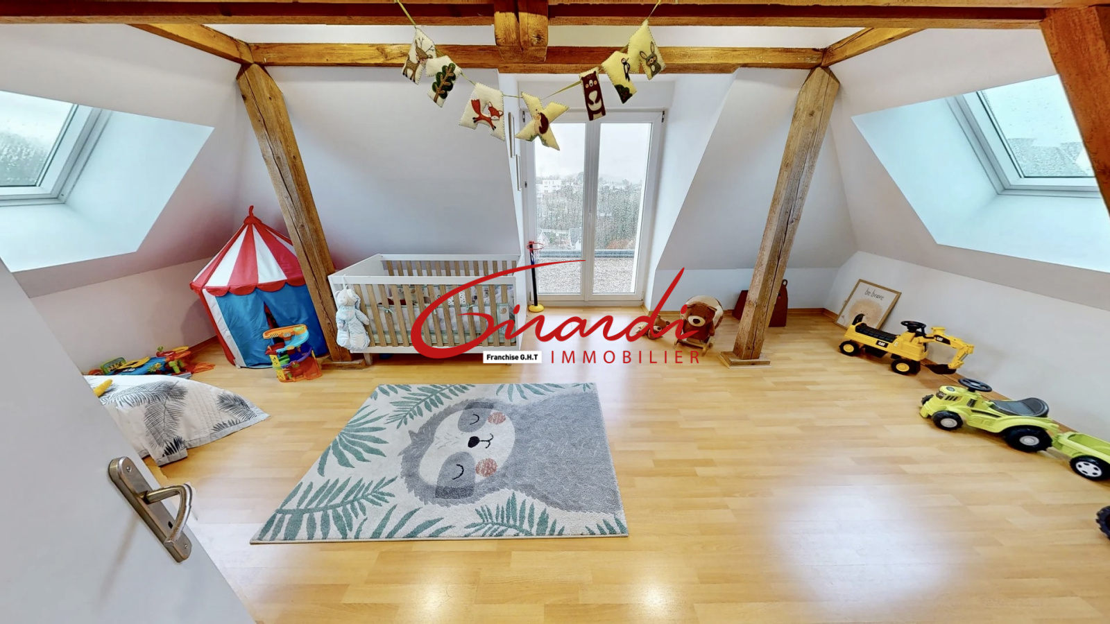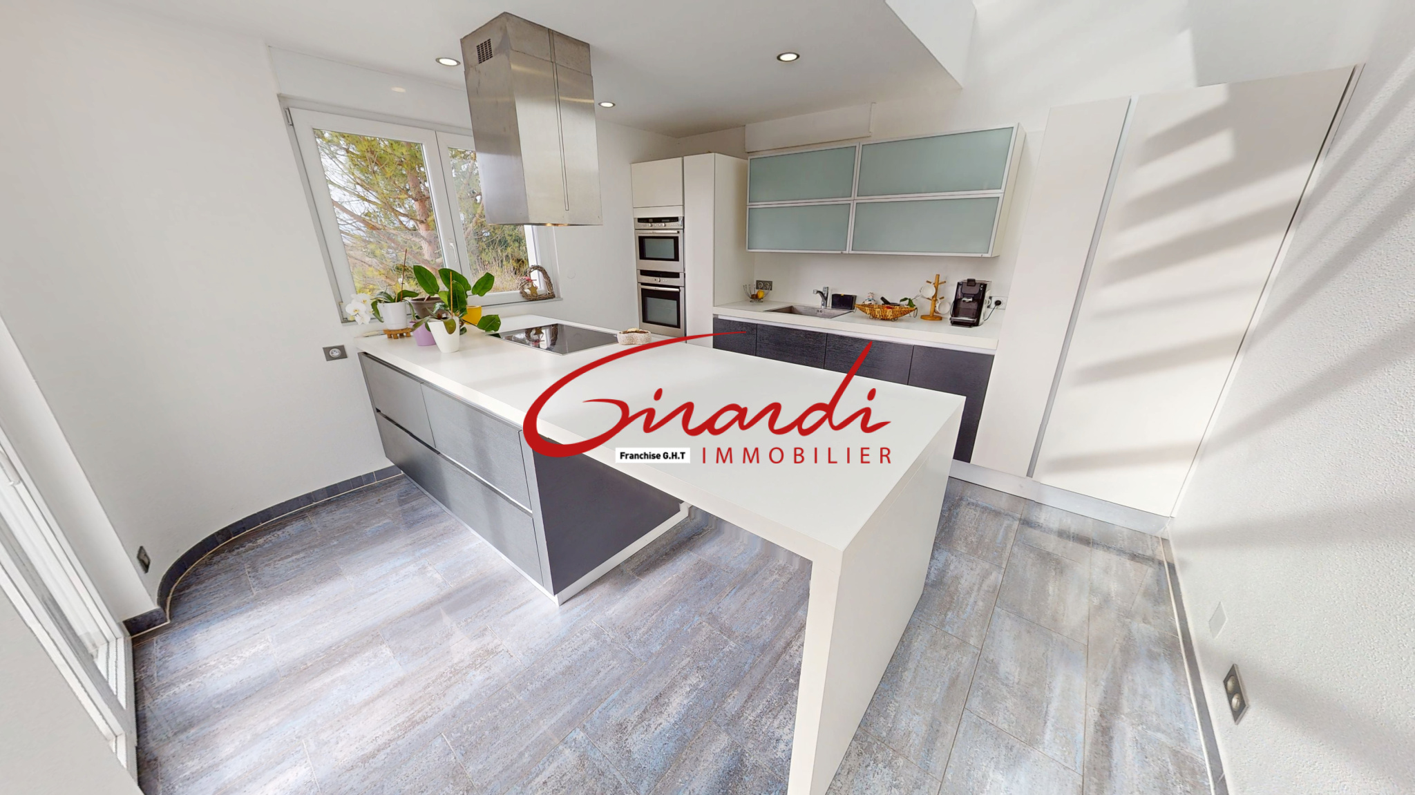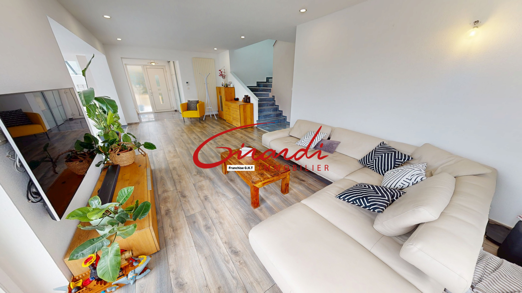 Sur les hauteurs de Brunstatt /quartier Rebberg au calme maginifique villa 9p de 307m² nichée dans un cadre de verdure avec superbe vue , la maison a été agrandie par rapport à l'origine par un architecte, ce qui lui confère un charme unique , on retrouve notamment une magnifique verrière , des demis niveaux , la luminosité est le mot d'ordre dans cette maison