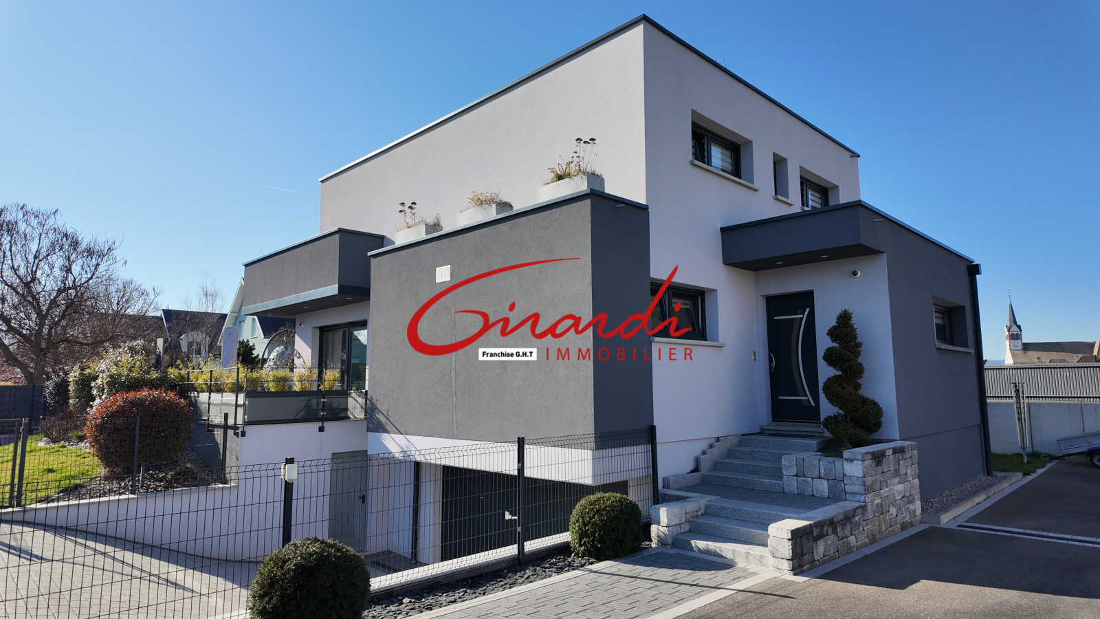 Secteur Soultz, découvrez cette villa d’architecte à toit plat de 192 m² sur 4,96 ares de terrain clos et paysagé, alliant design contemporain et prestations haut de gamme