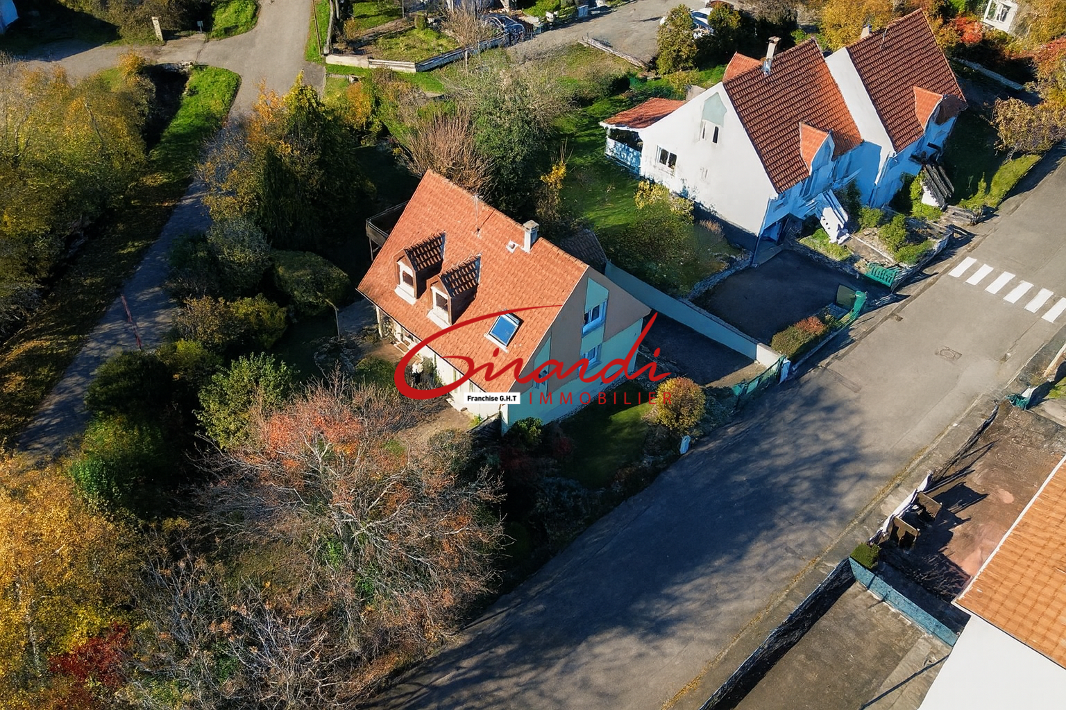 Elle dispose également d’un sous-sol complet, avec un accès direct au garage. Les 8 ares de terrain sont entièrement arborés, renforçant encore cette sensation de calme et de nature préservée.