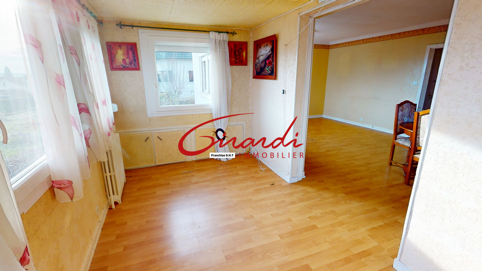 MAISON INDIVIDUELLE DE 87 M2 SUR 3,9 ARES DE TERRAIN À RÉNOVER AVEC SOUS-SOL ET GARAGE, SAS, entrée, cuisine séparée avec accès terrasse, un salon séjour double de 27,4 m2 avec une extension de 10,75m2, 2 chambres de 14 et 9,8 m2, une salle de bains avec baignoire, un wc séparé...