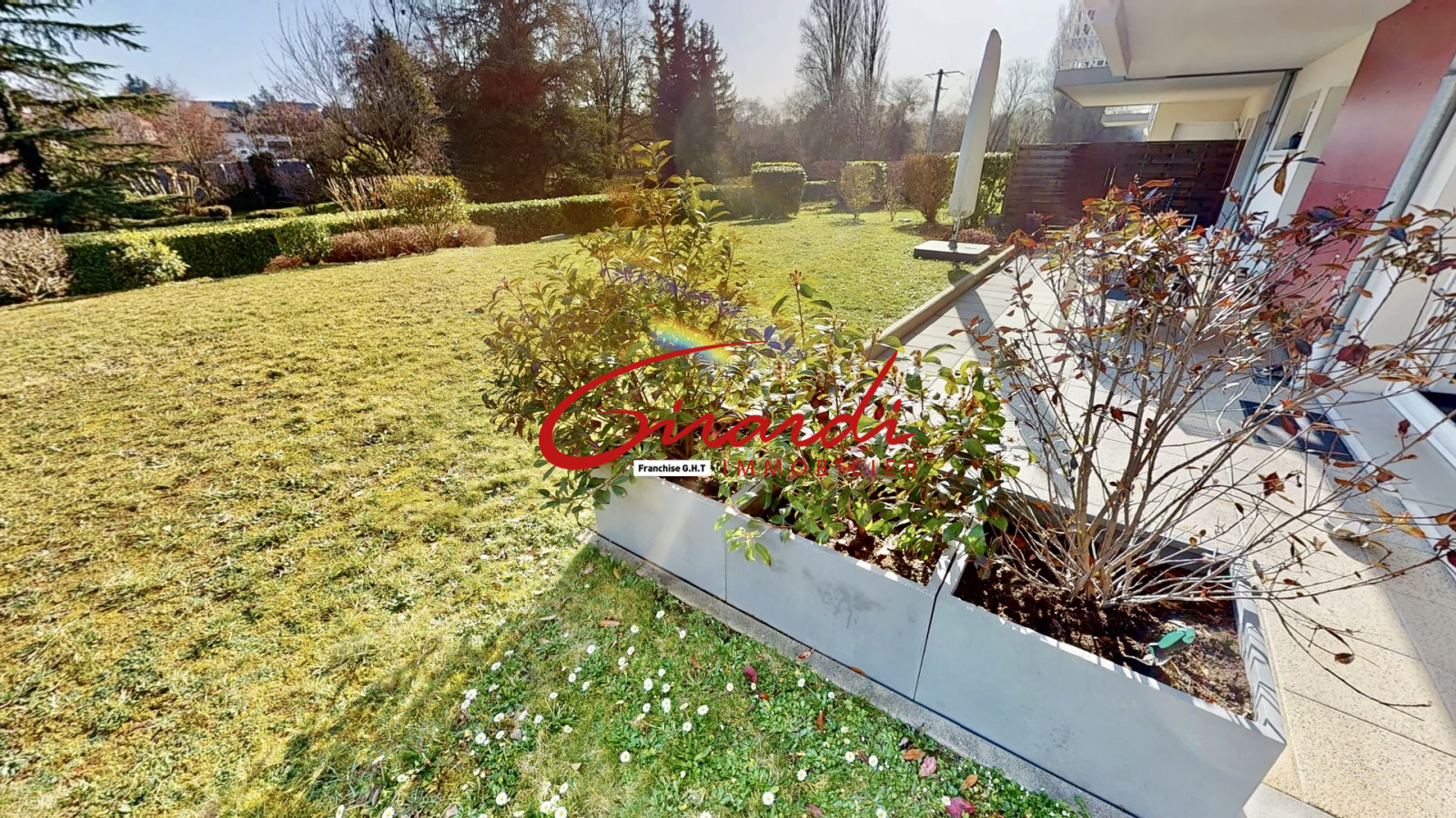 - Superbe terrasse couverte de 50m² avec une jolie vue sur le jardin paysagé